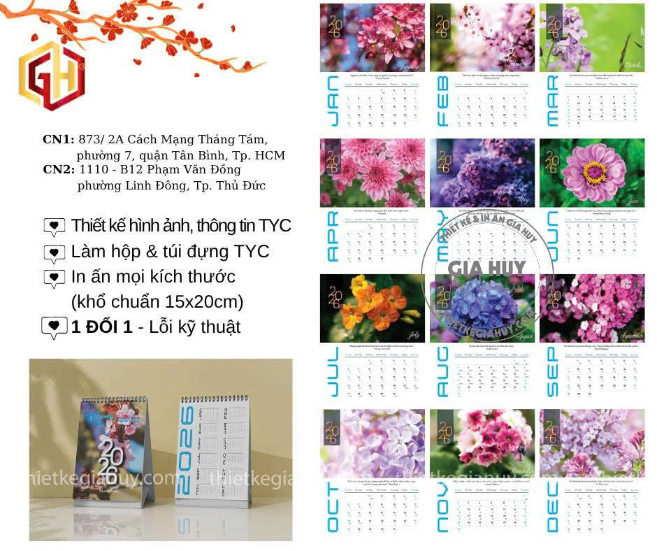 - Thiết Kế Gia Huy nhận in mẫu lịch để bàn văn phòng 2026 với giá rẻ nhất thị trường. In trực tiếp tại xưởng đảm bảo không qua bất kì trung gian nào.